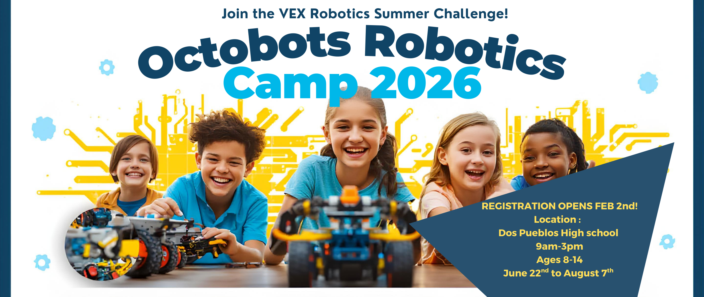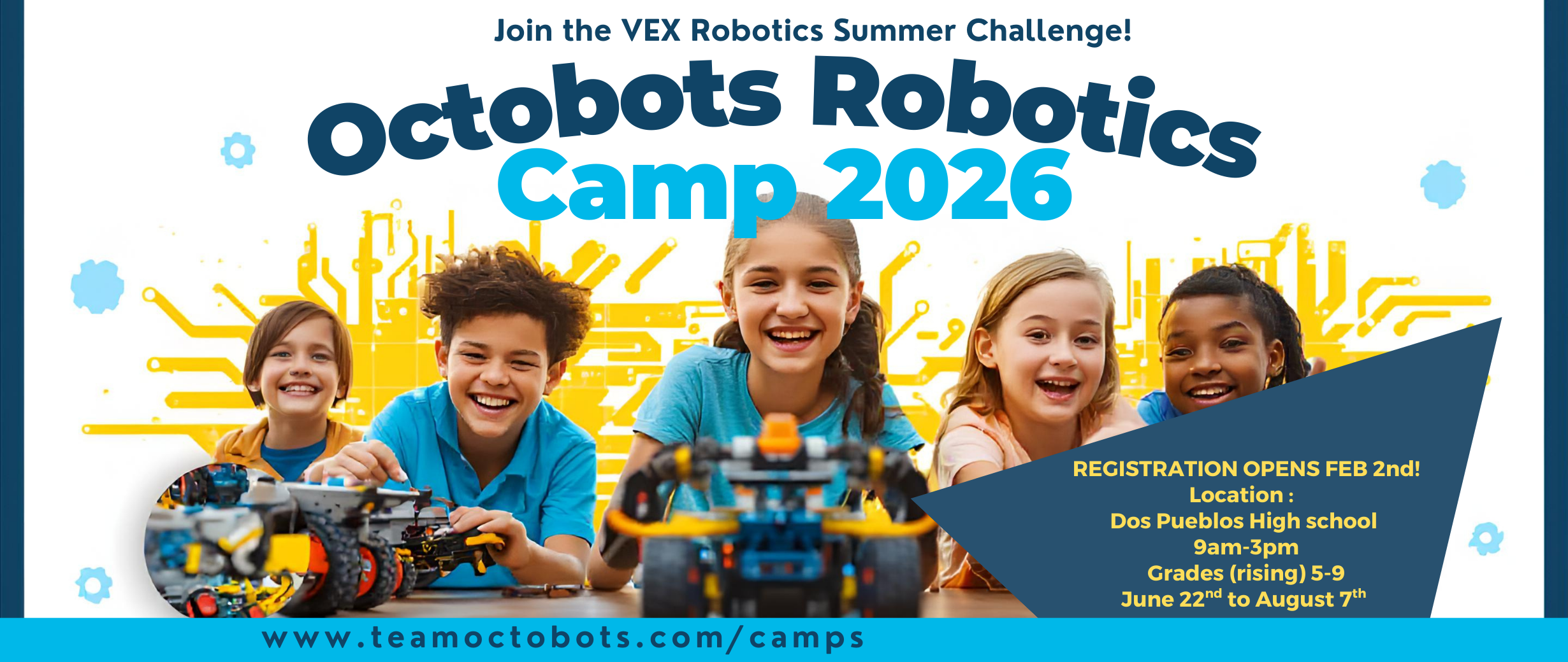 Learn Robotics with fun activities and challenges! Octobots combines the craftsmanship of engineering with the high-octane excitement of high school robotics. Following design standards set by First Robotics, you’ll bring your idea to life by brainstorming, workshopping, and customizing a robot to your specifications.