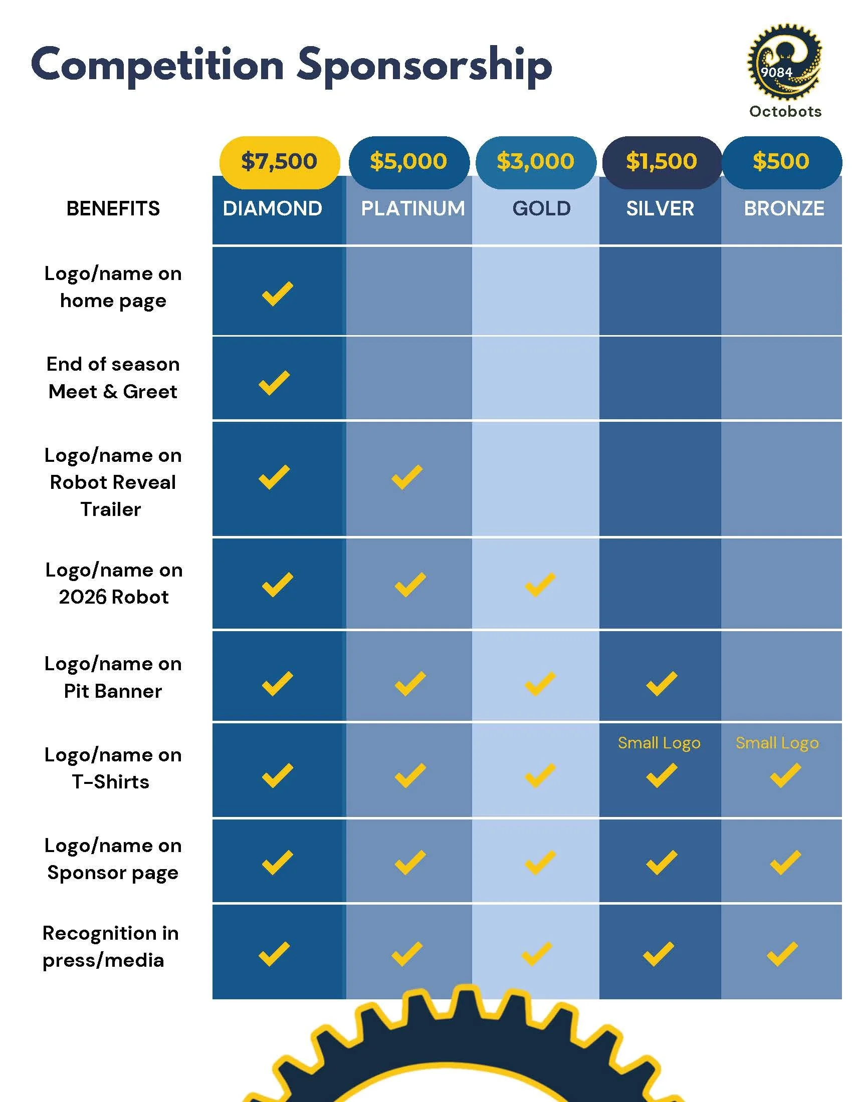 Cover registration, materials and travel expense to build a competition robotfor the 2026 FRC Competition season.
